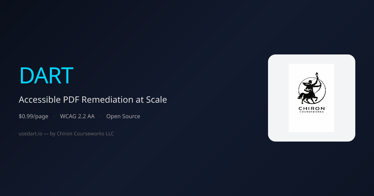 Target Audience & Use Case: DART is ideal for organizations, particularly higher education institutions and government entities, needing to ensure their PDF documents meet ADA Title II and WCAG 2.2 AA accessibility standards. It addresses the critical need for compliance ahead of the April 2026 ADA Title II final rule deadline.