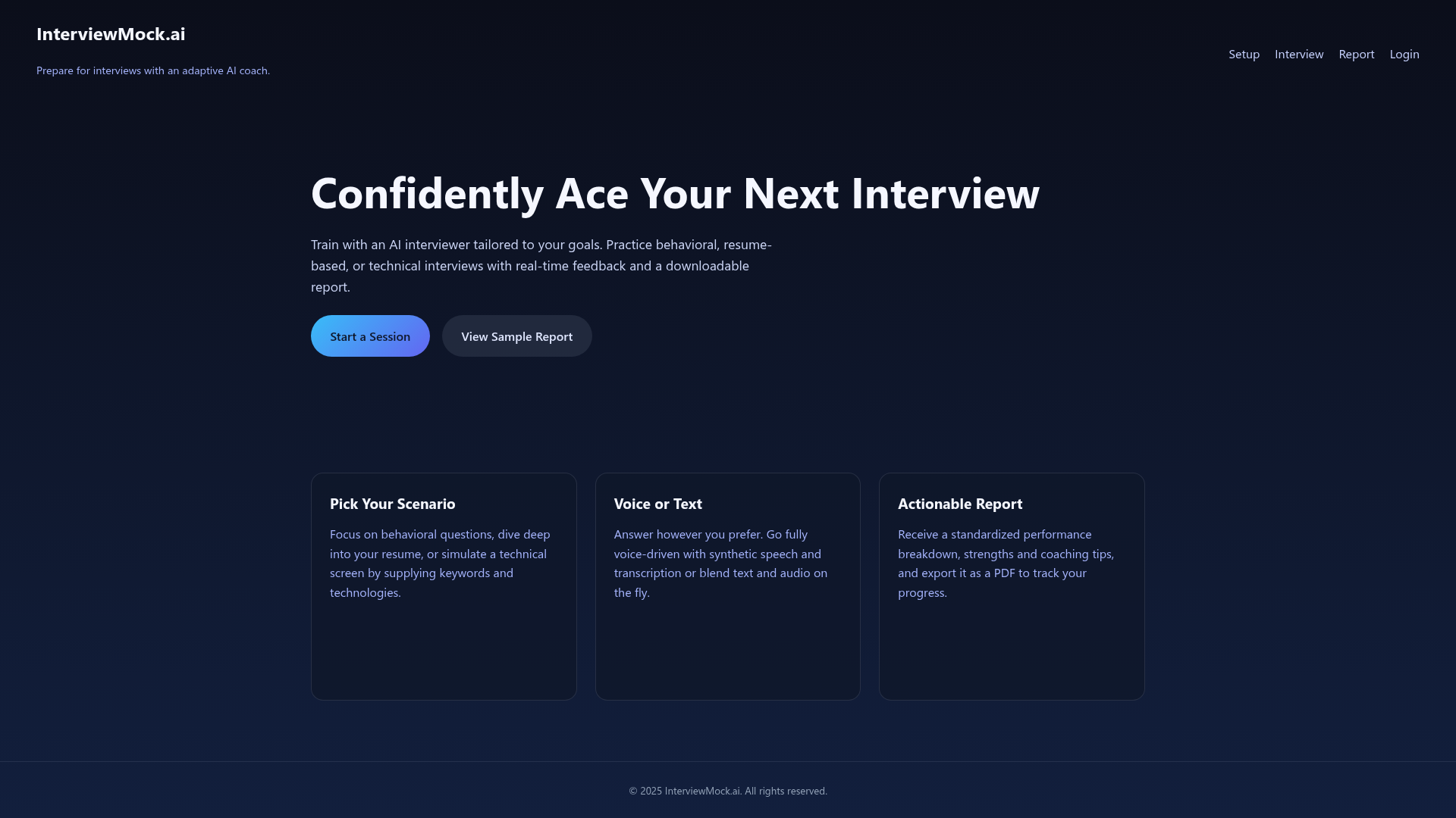 InterviewMock.ai is an innovative SaaS platform designed to revolutionize interview preparation. It offers AI-powered mock interviews through both voice and chat interfaces, providing users with personalized performance reports to enhance their job readiness.