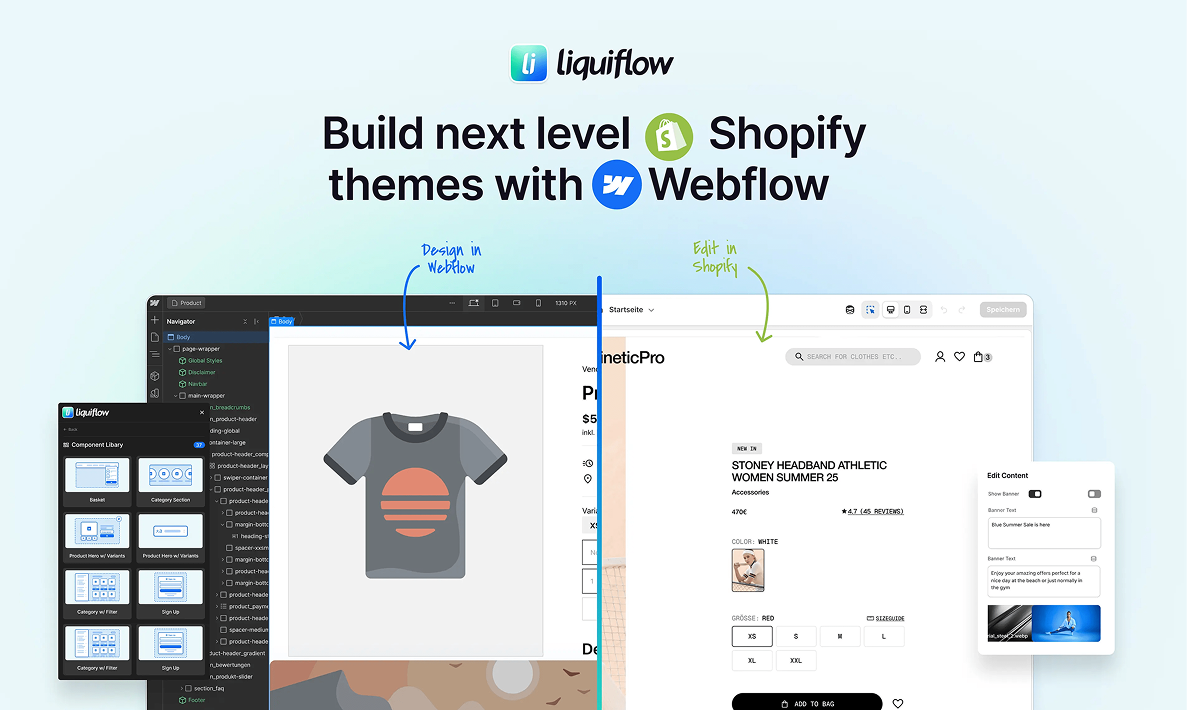 Build next level Shopify 2.0 themes with Webflow. 100% attribute based. 100% Liquid support.