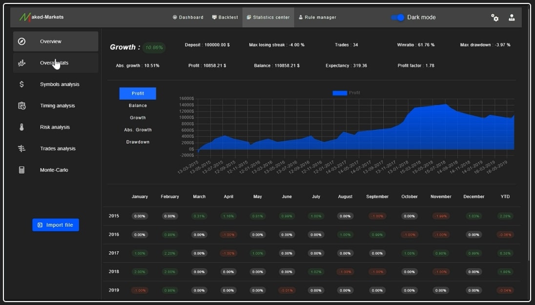 Naked-Markets is a very innovative backtesting software helping traders and investors to build and test their strategies on the financial historical data.
