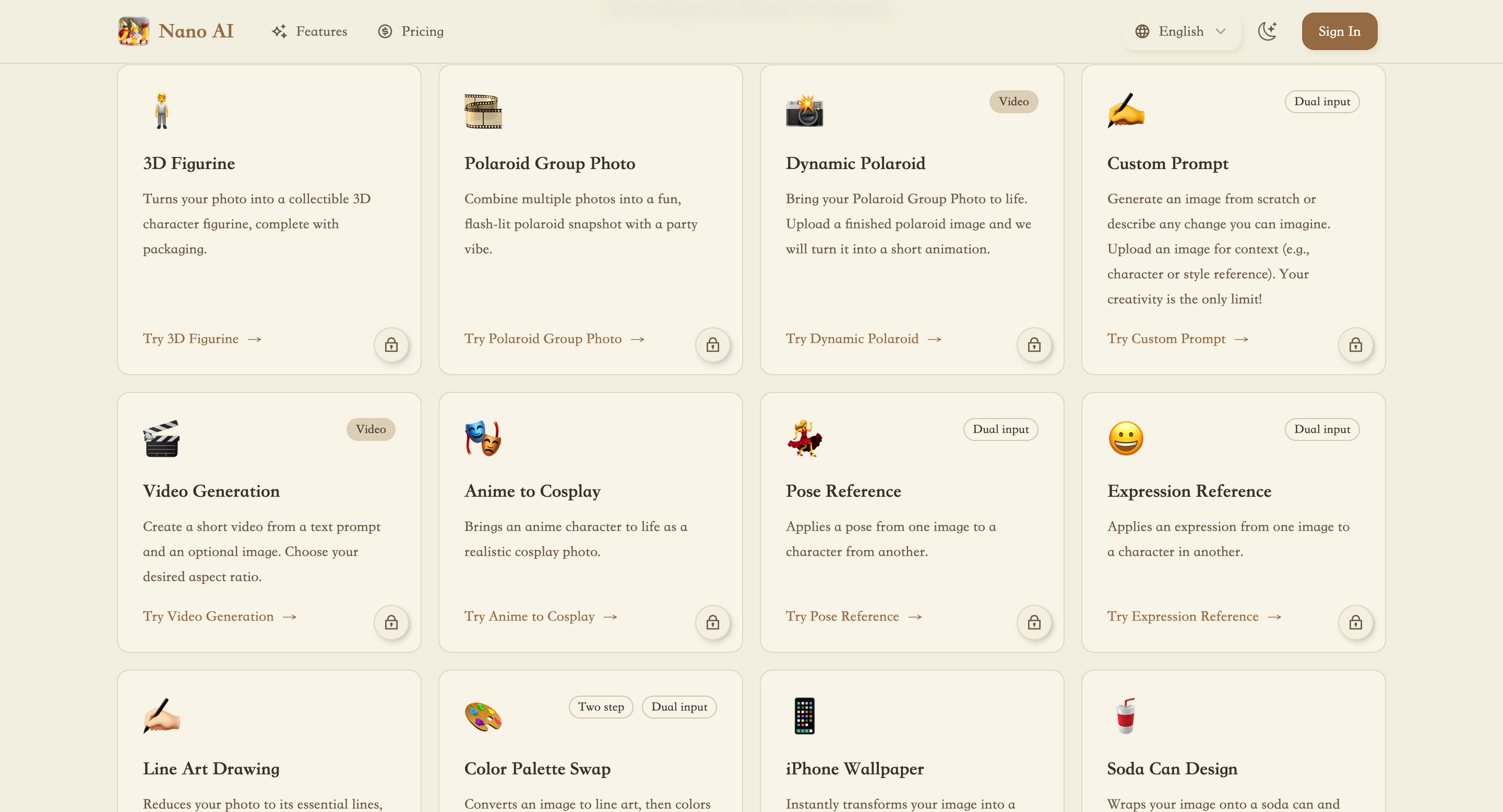 Experience 30+ Nano Banana effects in one AI image editor. Such as 3D figurines, and edit continuously with one click. No prompts needed. Try Nano AI for free!