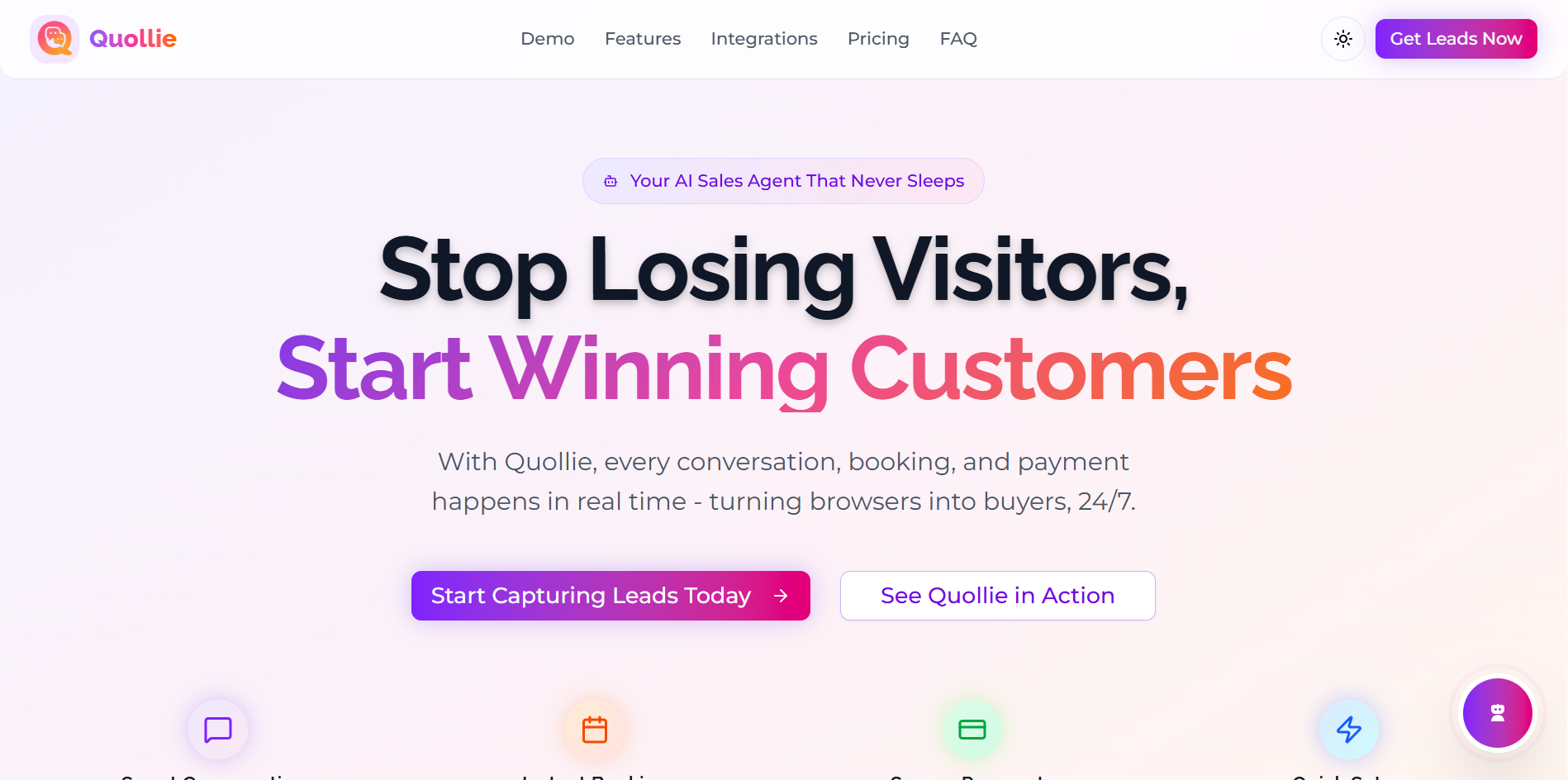 Stop losing visitors and start winning customers with an automated sales agent that captures and scores leads, books appointments, and closes deals in a single interaction.