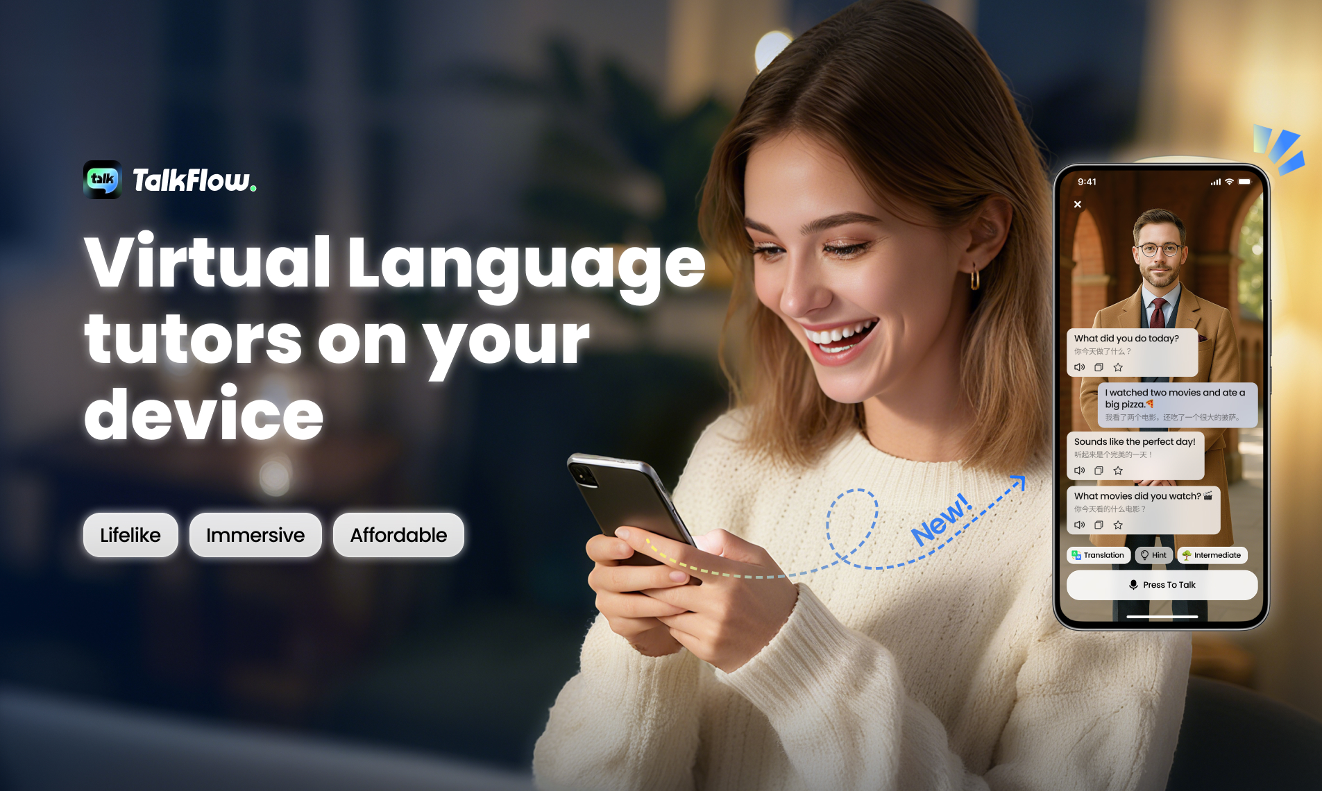 Get ready for real conversations. TalkFlow simulates travel, work, and daily chats with human-like AI tutors, gives instant corrections, builds a personalized plan, and tracks your growth. Speak up and own your English.