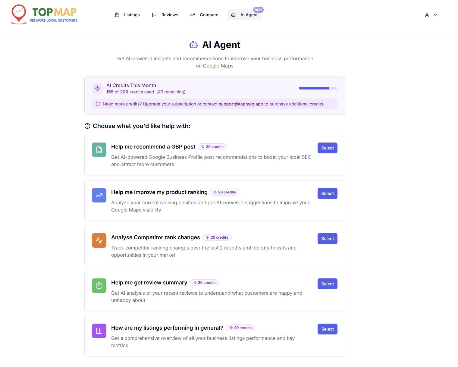 Topmap is an AI-powered agent that manages your Google Business Profile like an expert, offering rank tracking, review management, competitor insights, and smart recommendations to boost local visibility.